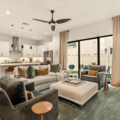 Ceiling Fan(s), Eating Space In Kitchen, Kitchen/Family Room Combo, Open Floorplan, Stone Counters, Thermostat, Walk-In Closet(s), Window Treatments