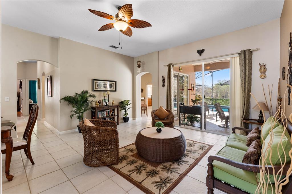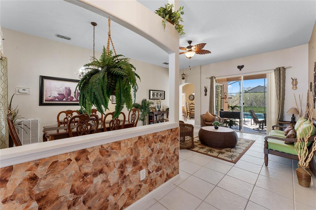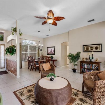 Ceiling Fan(s), Eating Space In Kitchen, High Ceilings, Kitchen/Family Room Combo, Living Room/Dining Room Combo, Open Floorplan, Solid Surface Counters, Thermostat, Walk-In Closet(s), Window Treatments