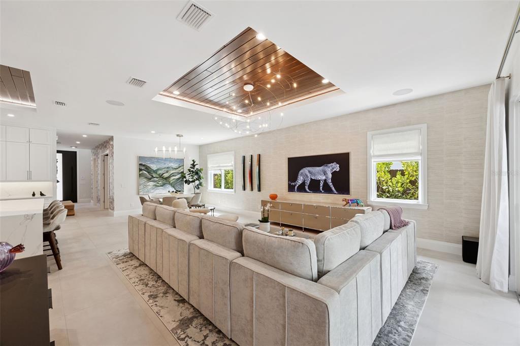 Ceiling Fan(s), Eating Space In Kitchen, High Ceilings, Living Room/Dining Room Combo, Open Floorplan, Pest Guard System, Primary Bedroom Main Floor, Smart Home, Solid Surface Counters, Solid Wood Cabinets, Stone Counters, Thermostat, Tray Ceiling(s), Walk-In Closet(s), Window Treatments