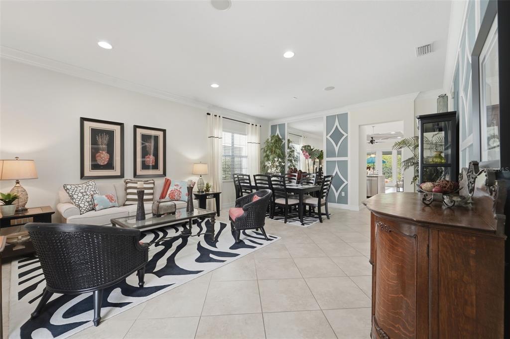 Built-in Features, Ceiling Fan(s), Crown Molding, Eating Space In Kitchen, High Ceilings, Kitchen/Family Room Combo, Living Room/Dining Room Combo, Open Floorplan, Primary Bedroom Main Floor, Solid Wood Cabinets, Split Bedroom, Stone Counters, Thermostat, Tray Ceiling(s), Walk-In Closet(s), Window Treatments