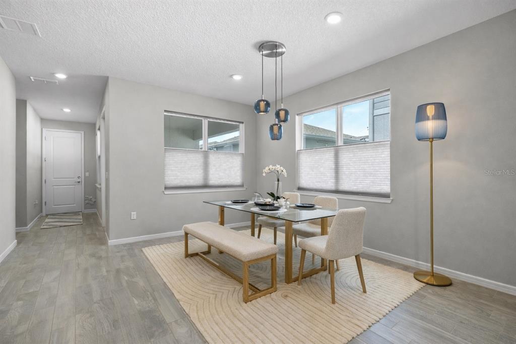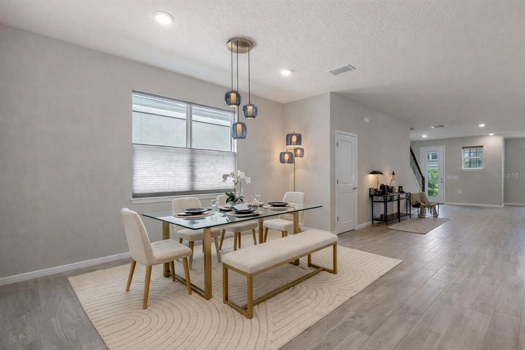 Eating Space In Kitchen, High Ceilings, Kitchen/Family Room Combo, Living Room/Dining Room Combo, Open Floorplan, PrimaryBedroom Upstairs, Stone Counters, Walk-In Closet(s), Window Treatments