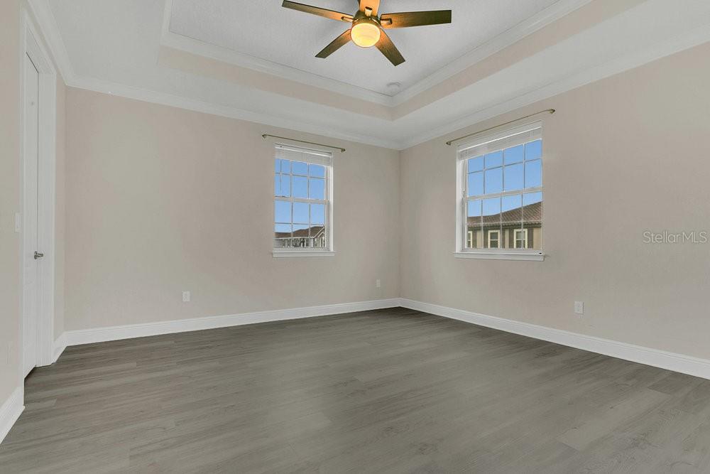 Crown Molding, Eating Space In Kitchen, Kitchen/Family Room Combo, Open Floorplan, PrimaryBedroom Upstairs, Split Bedroom, Stone Counters, Thermostat, Tray Ceiling(s), Walk-In Closet(s)