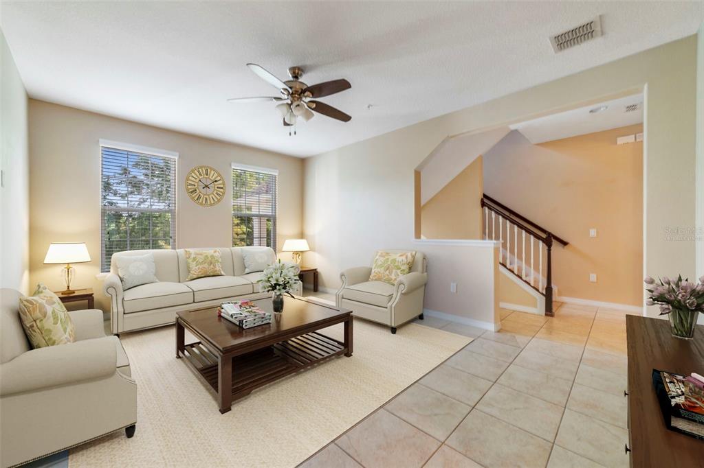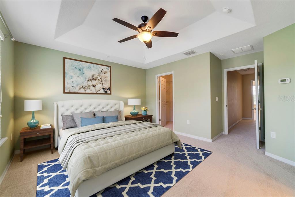 Built-in Features, Ceiling Fan(s), Eating Space In Kitchen, PrimaryBedroom Upstairs, Solid Wood Cabinets, Split Bedroom, Stone Counters, Thermostat, Tray Ceiling(s), Walk-In Closet(s), Window Treatments