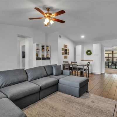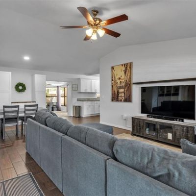 Ceiling Fan(s), High Ceilings, Kitchen/Family Room Combo, Living Room/Dining Room Combo, Primary Bedroom Main Floor, Solid Surface Counters, Solid Wood Cabinets, Thermostat, Vaulted Ceiling(s)