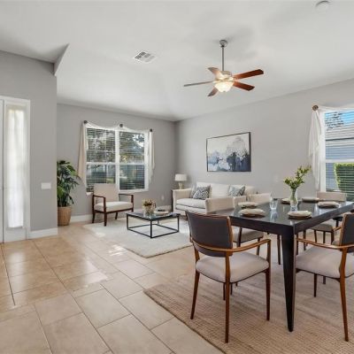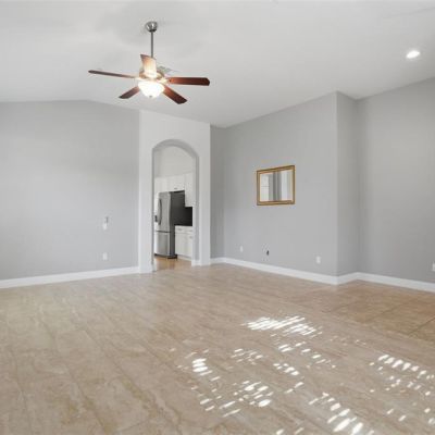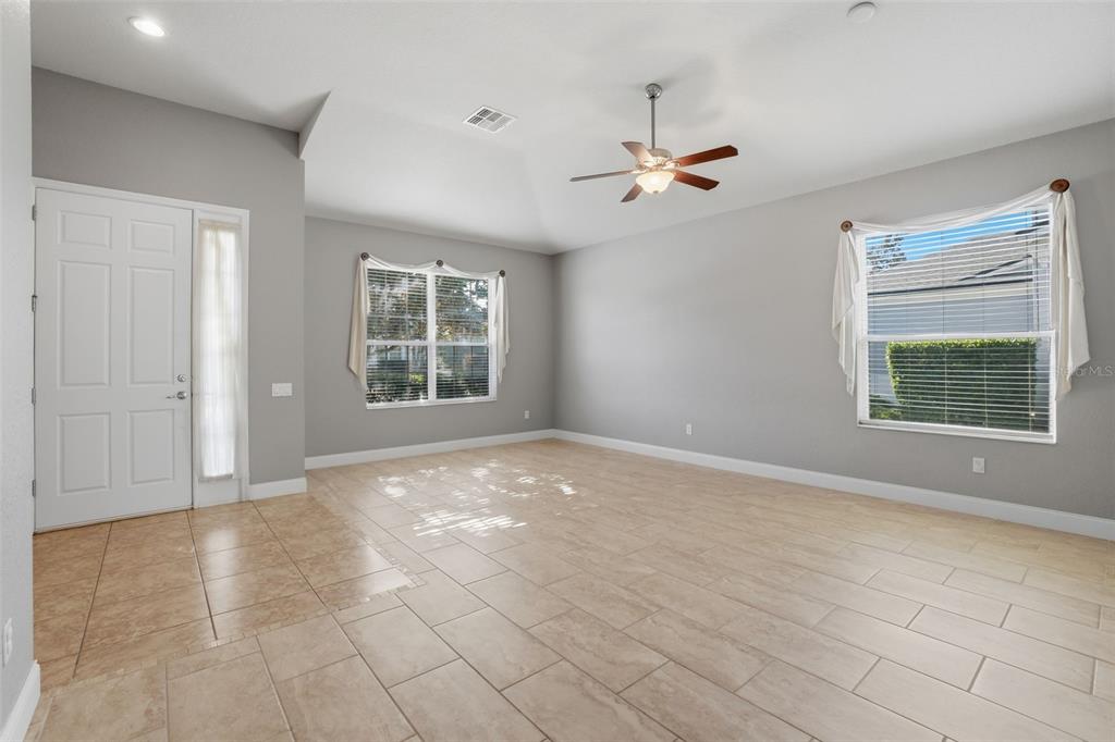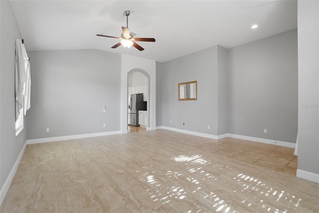 Ceiling Fan(s), Eating Space In Kitchen, High Ceilings, Kitchen/Family Room Combo, Living Room/Dining Room Combo, Open Floorplan, Primary Bedroom Main Floor, Solid Surface Counters, Split Bedroom, Walk-In Closet(s)