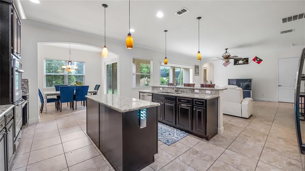 Ceiling Fan(s), Crown Molding, Eating Space In Kitchen, High Ceilings, Kitchen/Family Room Combo, Open Floorplan, Primary Bedroom Main Floor, PrimaryBedroom Upstairs, Solid Wood Cabinets, Split Bedroom, Stone Counters, Tray Ceiling(s), Vaulted Ceiling(s), Walk-In Closet(s), Window Treatments