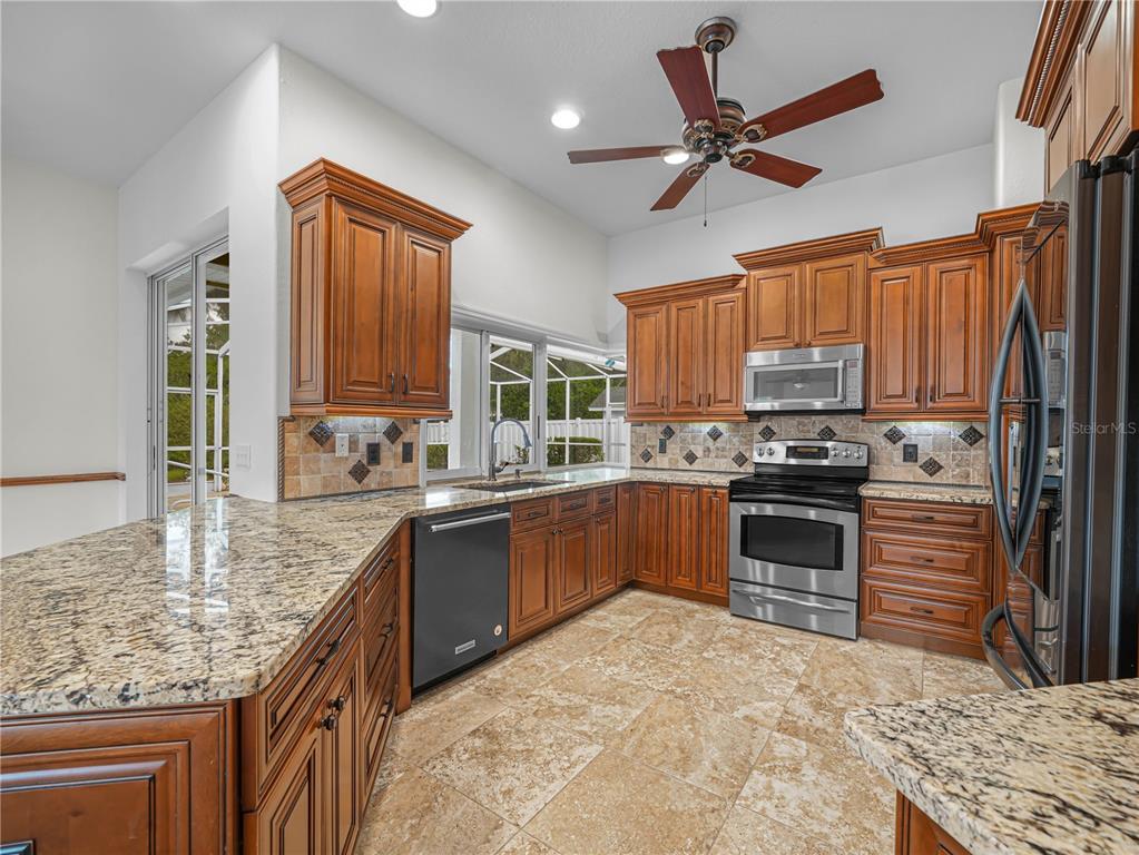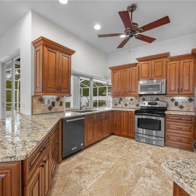 Ceiling Fan(s), Eating Space In Kitchen, Kitchen/Family Room Combo, Living Room/Dining Room Combo, Open Floorplan, Solid Surface Counters, Solid Wood Cabinets, Split Bedroom, Walk-In Closet(s)