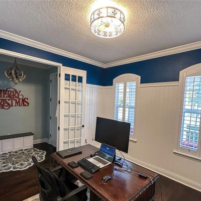Ceiling Fan(s), High Ceilings, Kitchen/Family Room Combo, Solid Surface Counters, Stone Counters, Thermostat, Window Treatments