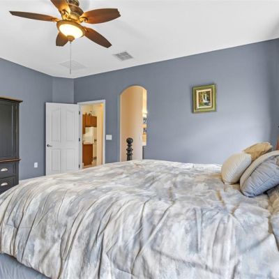 Ceiling Fan(s), High Ceilings, Kitchen/Family Room Combo, Open Floorplan, Primary Bedroom Main Floor, Solid Surface Counters, Solid Wood Cabinets, Split Bedroom, Thermostat, Walk-In Closet(s)