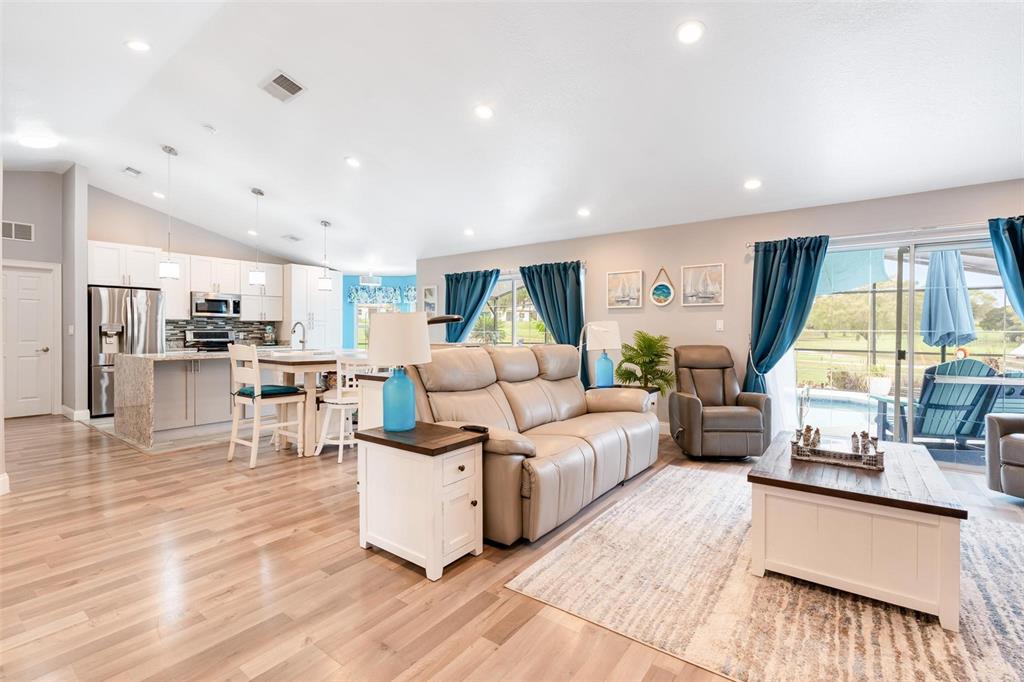 Ceiling Fan(s), Eating Space In Kitchen, High Ceilings, Kitchen/Family Room Combo, Open Floorplan, Primary Bedroom Main Floor, Solid Wood Cabinets, Split Bedroom, Stone Counters, Thermostat, Walk-In Closet(s), Window Treatments