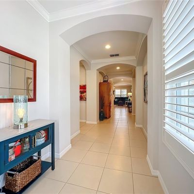 Crown Molding, High Ceilings, Kitchen/Family Room Combo, Open Floorplan, Primary Bedroom Main Floor, Stone Counters, Walk-In Closet(s), Window Treatments