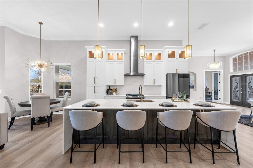 Ceiling Fan(s), Crown Molding, Eating Space In Kitchen, High Ceilings, Kitchen/Family Room Combo, Primary Bedroom Main Floor, Solid Wood Cabinets, Stone Counters, Walk-In Closet(s)