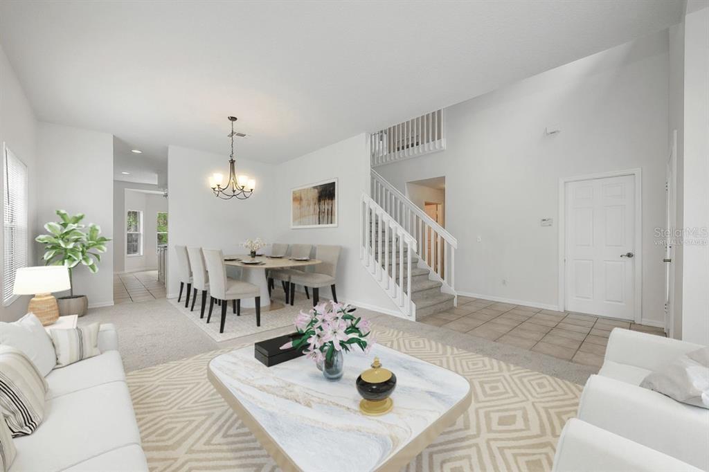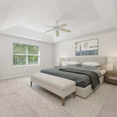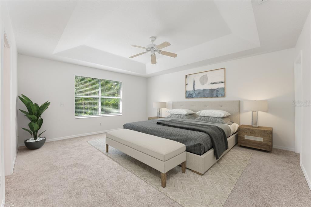 Ceiling Fan(s), Eating Space In Kitchen, High Ceilings, Kitchen/Family Room Combo, Living Room/Dining Room Combo, Open Floorplan, PrimaryBedroom Upstairs, Split Bedroom, Thermostat, Tray Ceiling(s), Walk-In Closet(s), Window Treatments