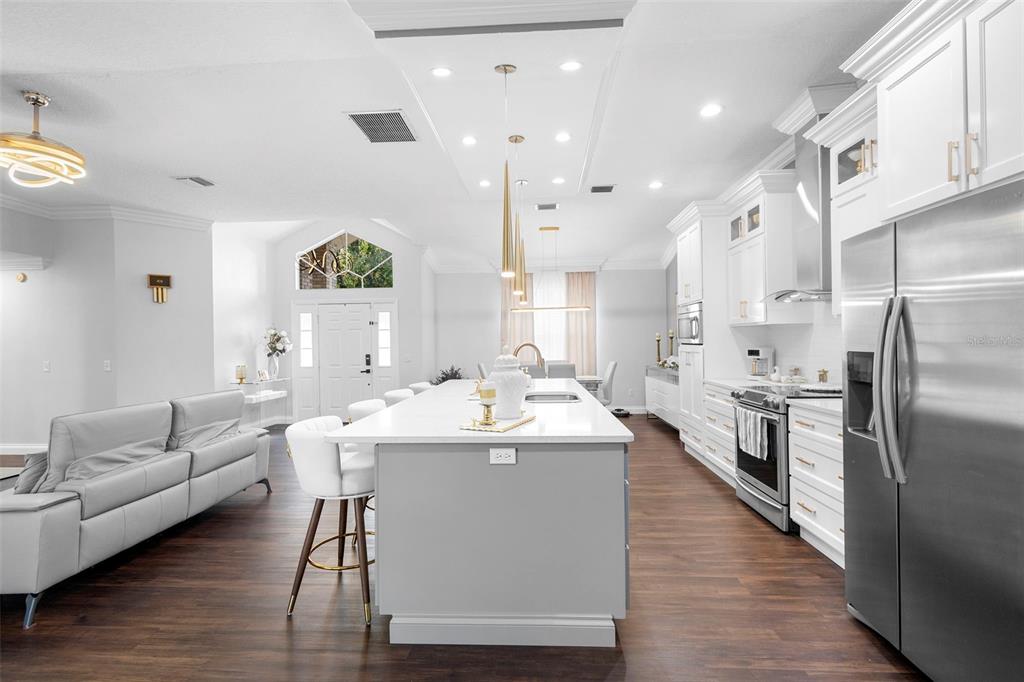 Ceiling Fan(s), Crown Molding, Kitchen/Family Room Combo, L Dining, Open Floorplan, Solid Surface Counters, Split Bedroom, Vaulted Ceiling(s), Walk-In Closet(s)