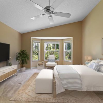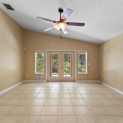 Ceiling Fan(s), Eating Space In Kitchen, High Ceilings, Kitchen/Family Room Combo, Living Room/Dining Room Combo, Open Floorplan, Primary Bedroom Main Floor, Solid Surface Counters, Solid Wood Cabinets, Thermostat, Walk-In Closet(s), Window Treatments