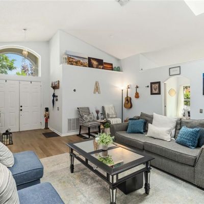 High Ceilings, Kitchen/Family Room Combo, Living Room/Dining Room Combo, Skylight(s), Stone Counters, Thermostat, Vaulted Ceiling(s), Walk-In Closet(s)