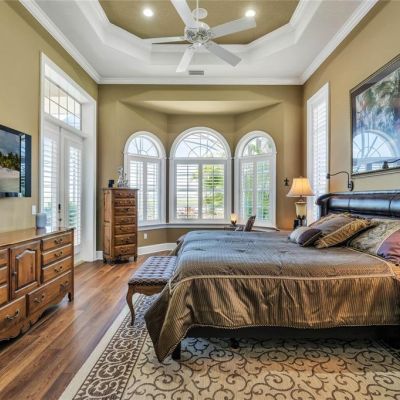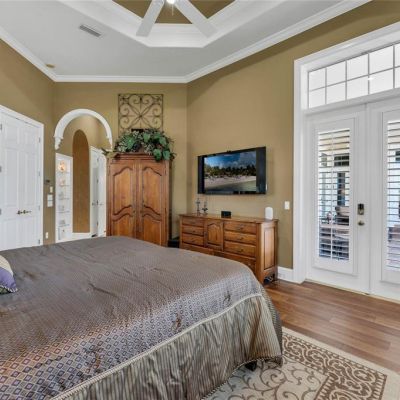Accessibility Features, Ceiling Fan(s), Chair Rail, Coffered Ceiling(s), Crown Molding, High Ceilings, Open Floorplan, Primary Bedroom Main Floor, Smart Home, Solid Surface Counters, Split Bedroom, Stone Counters, Thermostat, Tray Ceiling(s), Walk-In Closet(s), Window Treatments