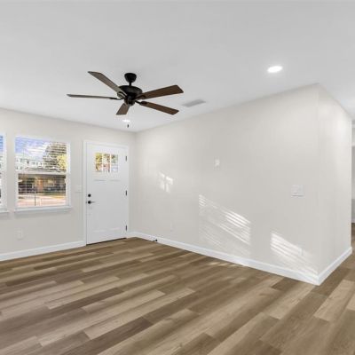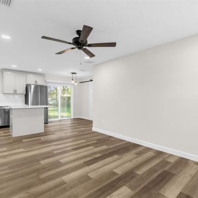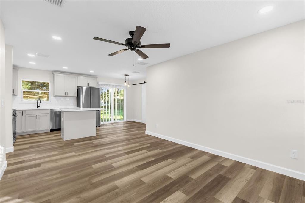 Ceiling Fan(s), Eating Space In Kitchen, Kitchen/Family Room Combo, Open Floorplan, Primary Bedroom Main Floor, Solid Surface Counters, Solid Wood Cabinets, Thermostat, Window Treatments