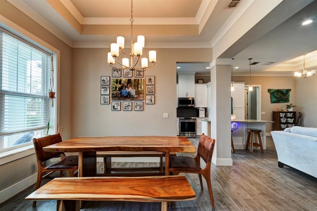 Attic Fan, Built-in Features, Cathedral Ceiling(s), Ceiling Fan(s), Crown Molding, Eating Space In Kitchen, High Ceilings, Kitchen/Family Room Combo, Living Room/Dining Room Combo, Open Floorplan, Primary Bedroom Main Floor, Solid Surface Counters, Solid Wood Cabinets, Split Bedroom, Thermostat, Tray Ceiling(s), Vaulted Ceiling(s), Walk-In Closet(s), Window Treatments