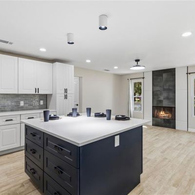 Ceiling Fan(s), Dry Bar, Kitchen/Family Room Combo, Primary Bedroom Main Floor, Solid Wood Cabinets, Split Bedroom, Stone Counters, Vaulted Ceiling(s), Walk-In Closet(s)