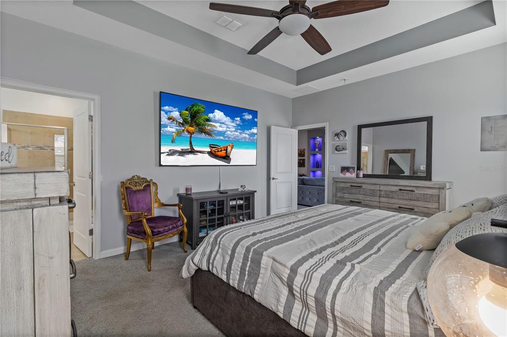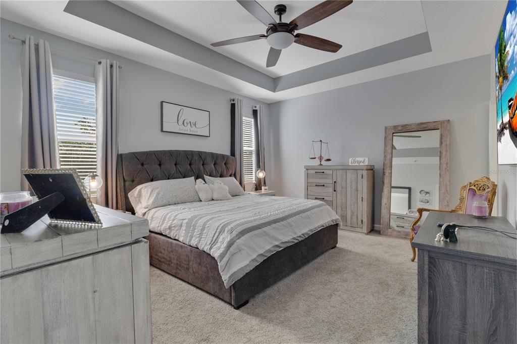 Built-in Features, Ceiling Fan(s), Living Room/Dining Room Combo, Open Floorplan, Stone Counters, Thermostat, Tray Ceiling(s), Walk-In Closet(s)