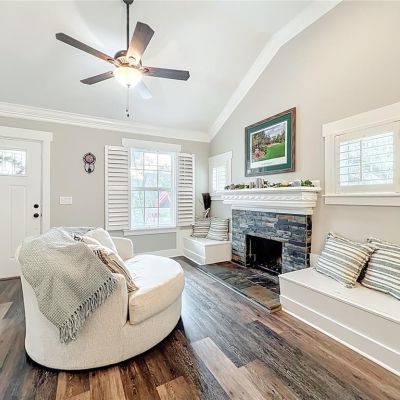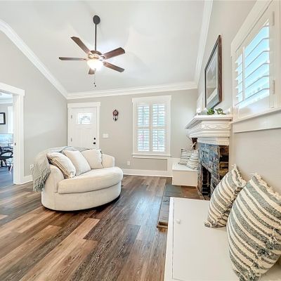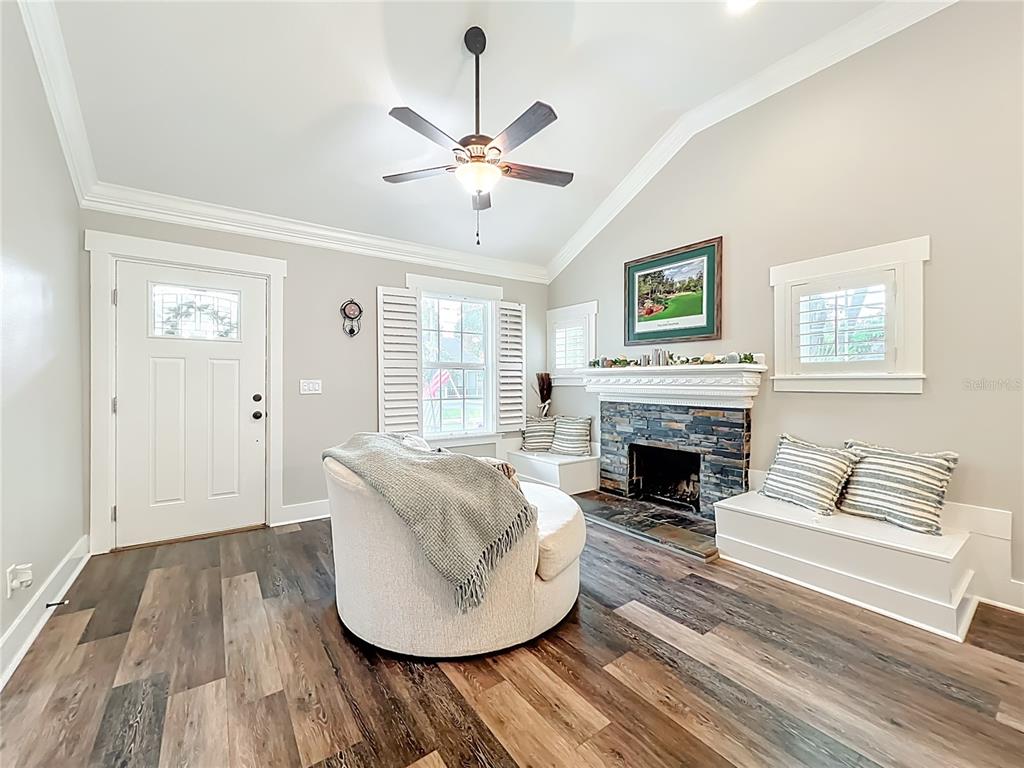Built-in Features, Ceiling Fan(s), Crown Molding, Open Floorplan, Solid Surface Counters, Split Bedroom, Vaulted Ceiling(s)