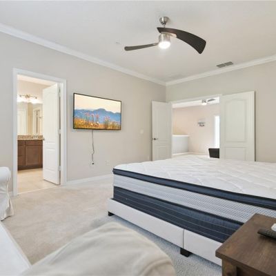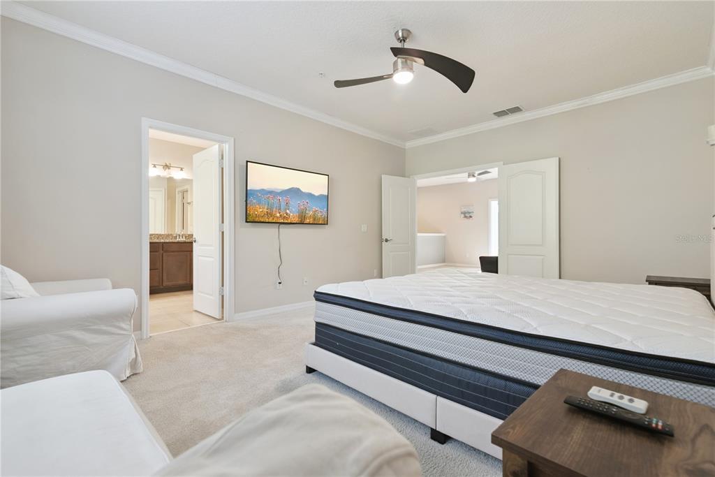 Ceiling Fan(s), Crown Molding, Eating Space In Kitchen, High Ceilings, Kitchen/Family Room Combo, Open Floorplan, PrimaryBedroom Upstairs, Stone Counters, Walk-In Closet(s)