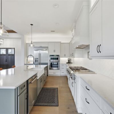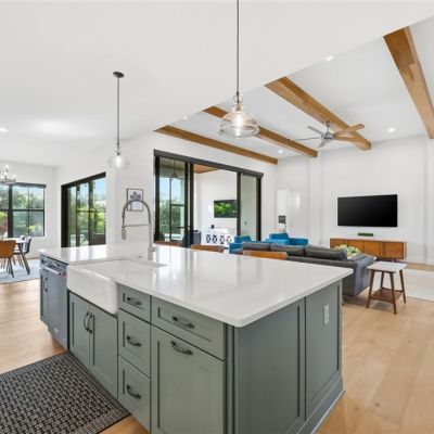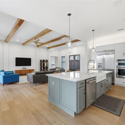 Cathedral Ceiling(s), Ceiling Fan(s), High Ceilings, Kitchen/Family Room Combo, Open Floorplan, Primary Bedroom Main Floor, Solid Wood Cabinets, Split Bedroom, Stone Counters, Thermostat, Walk-In Closet(s)
