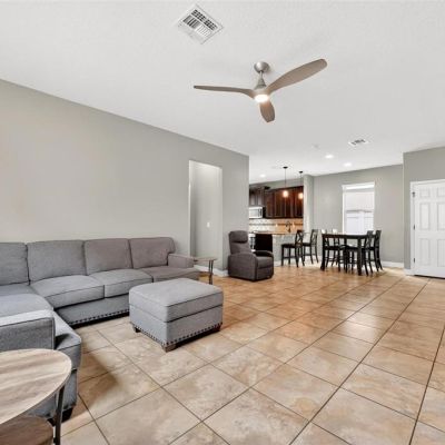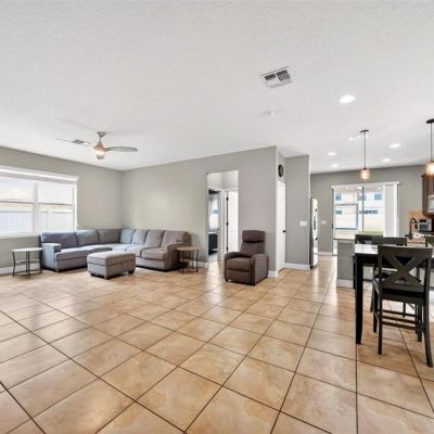 Ceiling Fan(s), Kitchen/Family Room Combo, Open Floorplan, Split Bedroom, Walk-In Closet(s), Window Treatments