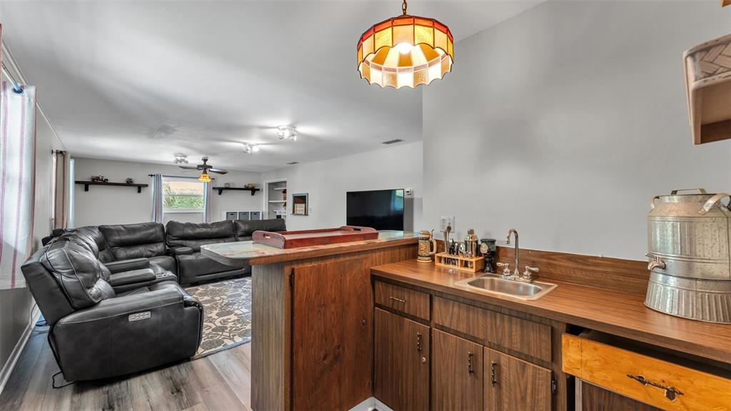Built-in Features, Ceiling Fan(s), Eating Space In Kitchen, Kitchen/Family Room Combo, Primary Bedroom Main Floor, Solid Surface Counters, Solid Wood Cabinets, Split Bedroom, Walk-In Closet(s), Wet Bar