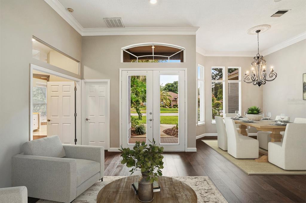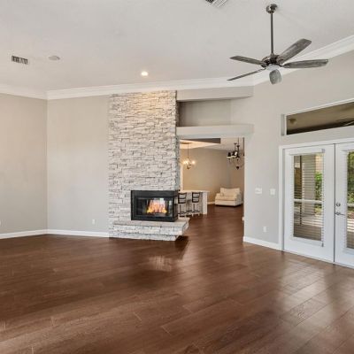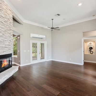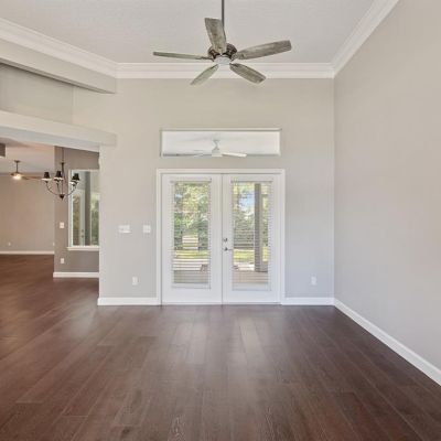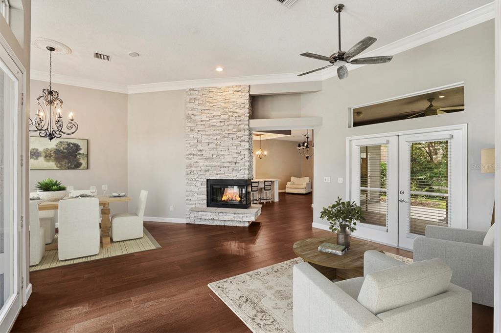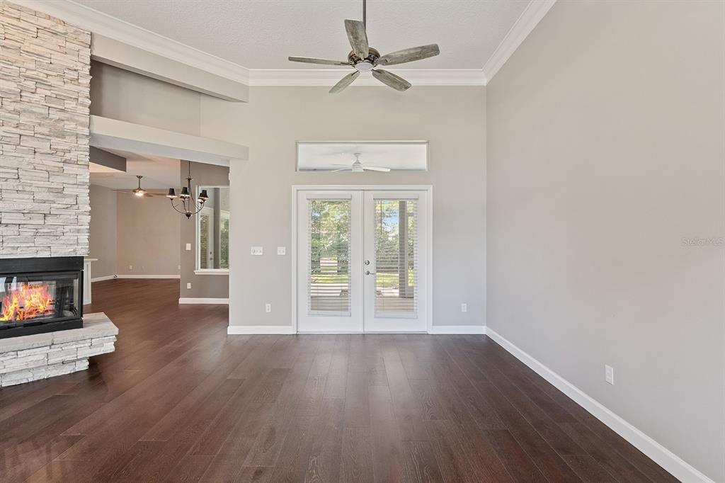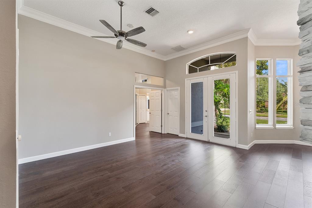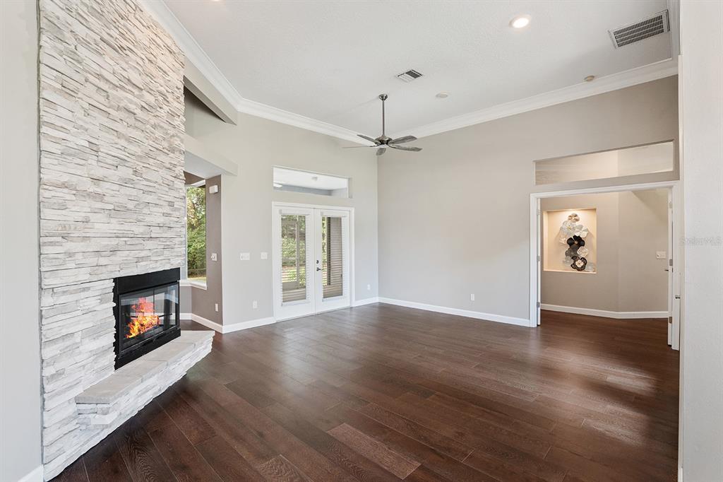 Cathedral Ceiling(s), Ceiling Fan(s), Crown Molding, Kitchen/Family Room Combo, Solid Surface Counters, Solid Wood Cabinets, Split Bedroom, Stone Counters, Walk-In Closet(s), Window Treatments