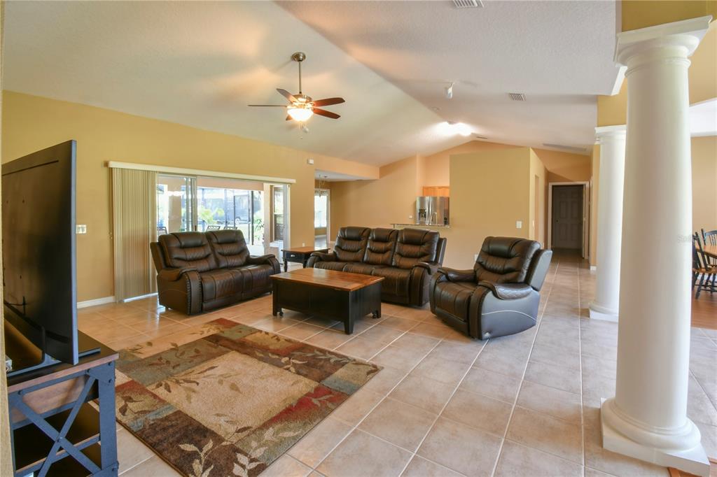 Attic Fan, Ceiling Fan(s), Eating Space In Kitchen, High Ceilings, Open Floorplan, Solid Wood Cabinets, Split Bedroom, Stone Counters, Thermostat Attic Fan, Vaulted Ceiling(s), Walk-In Closet(s), Window Treatments