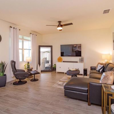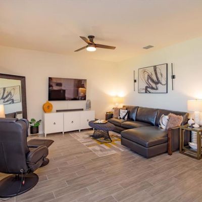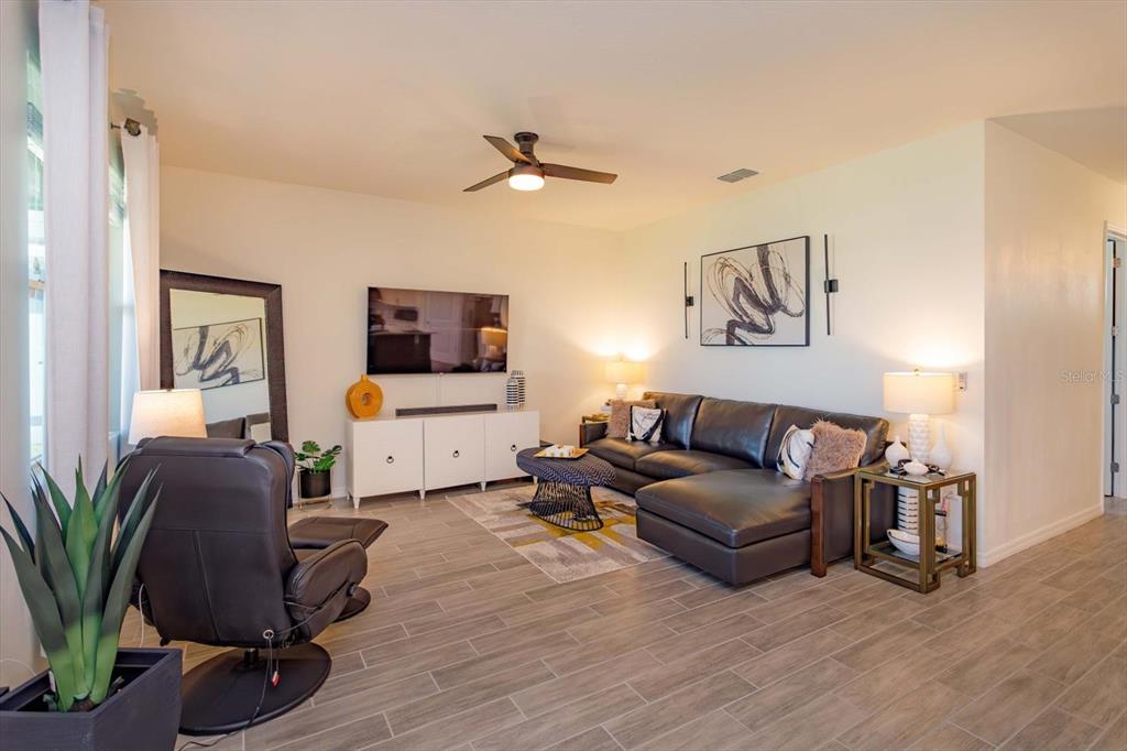 Ceiling Fan(s), Kitchen/Family Room Combo, Open Floorplan, Split Bedroom, Walk-In Closet(s), Window Treatments