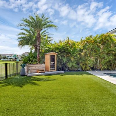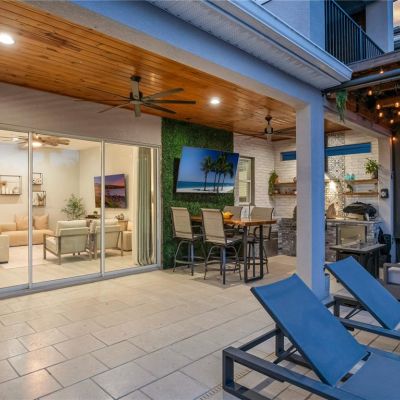 Balcony, Irrigation System, Outdoor Kitchen, Rain Gutters, Sidewalk, Sliding Doors, Sprinkler Metered