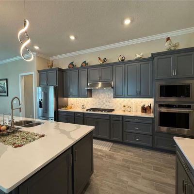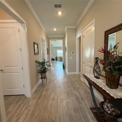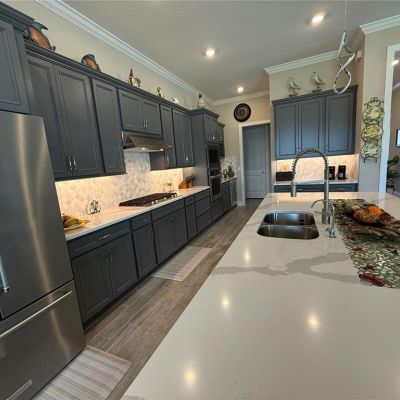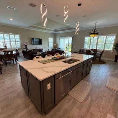 Ceiling Fan(s), Crown Molding, Eating Space In Kitchen, High Ceilings, Kitchen/Family Room Combo, Open Floorplan, Solid Surface Counters