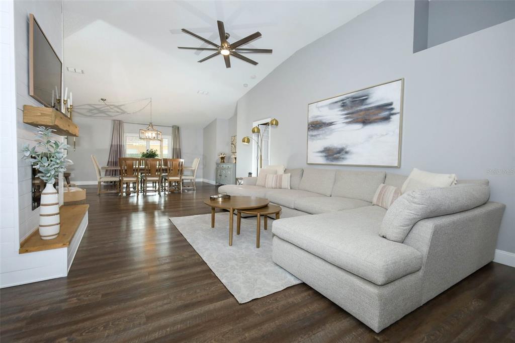 Ceiling Fan(s), Kitchen/Family Room Combo, Living Room/Dining Room Combo, Primary Bedroom Main Floor, Solid Wood Cabinets, Stone Counters, Thermostat, Vaulted Ceiling(s), Walk-In Closet(s), Window Treatments