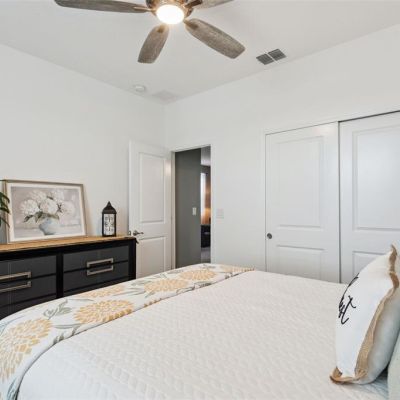 Ceiling Fan(s), Kitchen/Family Room Combo, Living Room/Dining Room Combo, Open Floorplan, PrimaryBedroom Upstairs, Split Bedroom, Thermostat, Walk-In Closet(s)