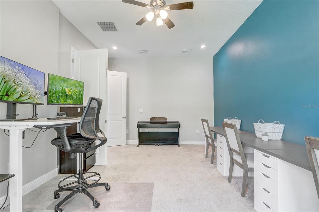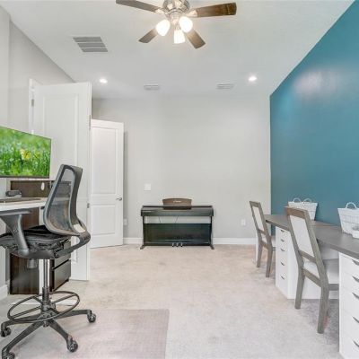 Ceiling Fan(s), Dry Bar, Eating Space In Kitchen, High Ceilings, Open Floorplan, PrimaryBedroom Upstairs, Thermostat, Walk-In Closet(s)