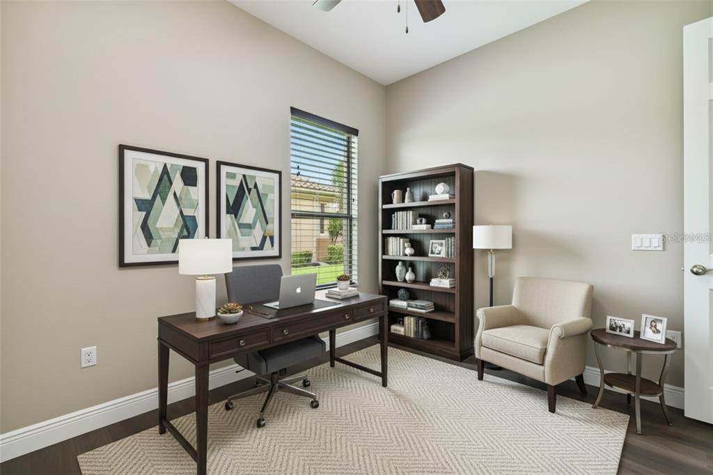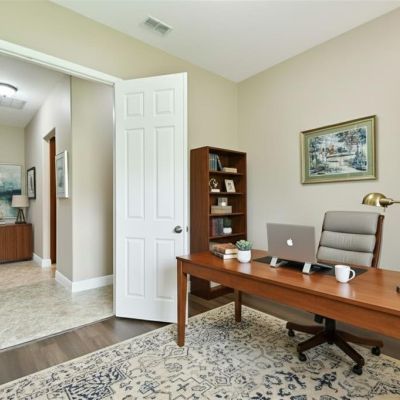 Ceiling Fan(s), Coffered Ceiling(s), Eating Space In Kitchen, L Dining, Open Floorplan, Primary Bedroom Main Floor, Solid Wood Cabinets, Split Bedroom, Stone Counters, Thermostat, Walk-In Closet(s), Window Treatments