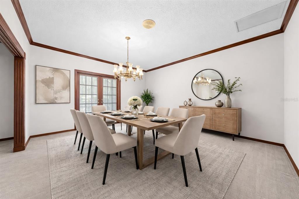 Ceiling Fan(s), Crown Molding, Eating Space In Kitchen, High Ceilings, Primary Bedroom Main Floor, Solid Wood Cabinets, Thermostat, Window Treatments