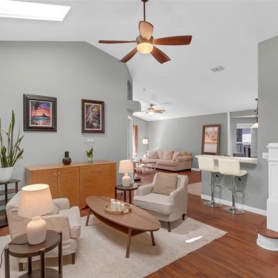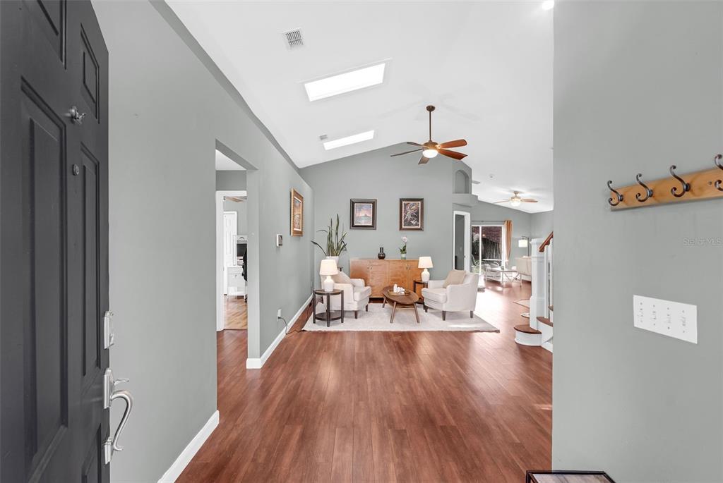 Ceiling Fan(s), Eating Space In Kitchen, High Ceilings, Open Floorplan, Primary Bedroom Main Floor, Skylight(s), Split Bedroom, Vaulted Ceiling(s), Walk-In Closet(s)