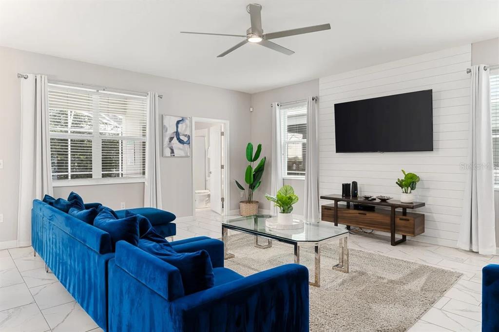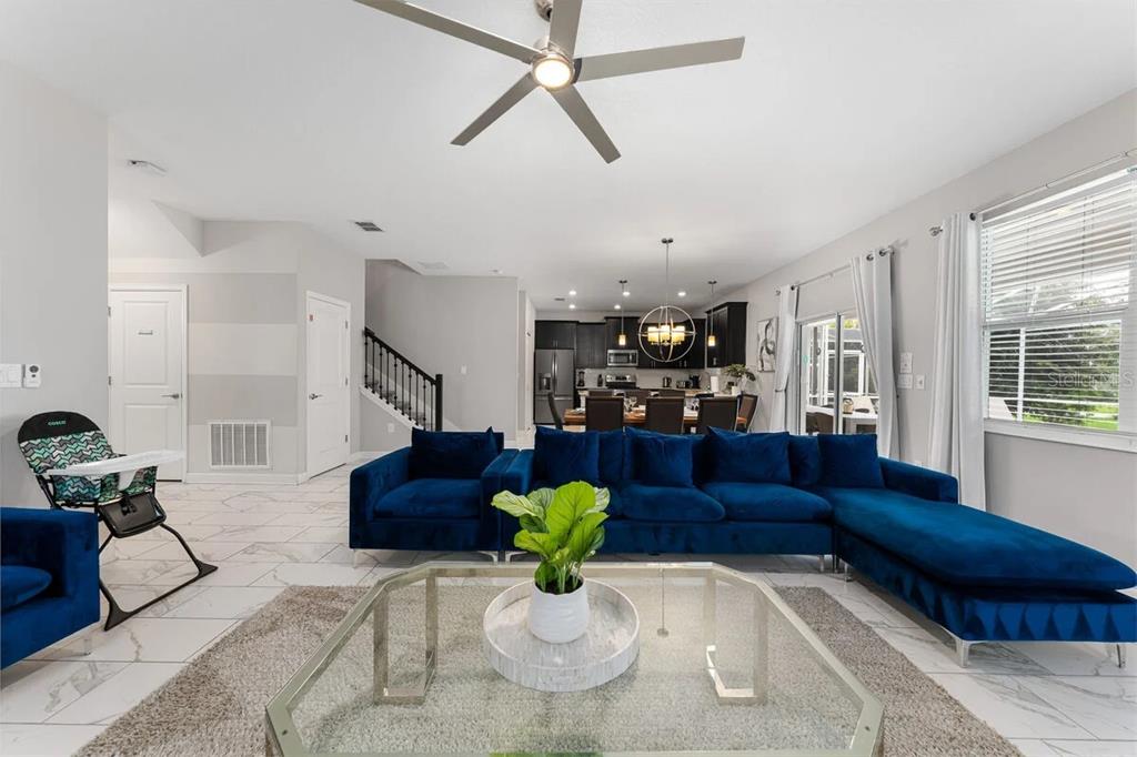 Built-in Features, Ceiling Fan(s), Crown Molding, Living Room/Dining Room Combo