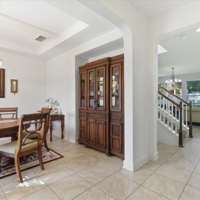 Ceiling Fan(s), Coffered Ceiling(s), Eating Space In Kitchen, Kitchen/Family Room Combo, L Dining, Living Room/Dining Room Combo, Open Floorplan, PrimaryBedroom Upstairs, Solid Surface Counters, Solid Wood Cabinets, Thermostat