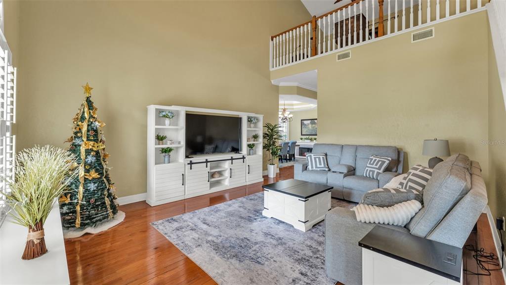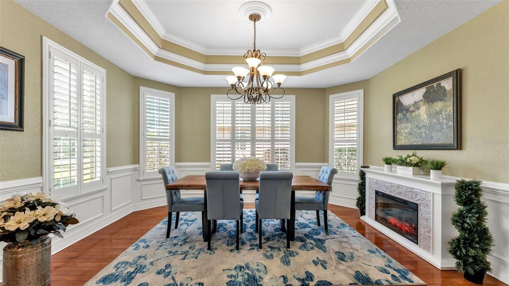 Attic Fan, Cathedral Ceiling(s), Ceiling Fan(s), Central Vacuum, Crown Molding, Eating Space In Kitchen, High Ceilings, Kitchen/Family Room Combo, L Dining, Primary Bedroom Main Floor, Solid Surface Counters, Solid Wood Cabinets, Split Bedroom, Tray Ceiling(s), Vaulted Ceiling(s), Walk-In Closet(s)