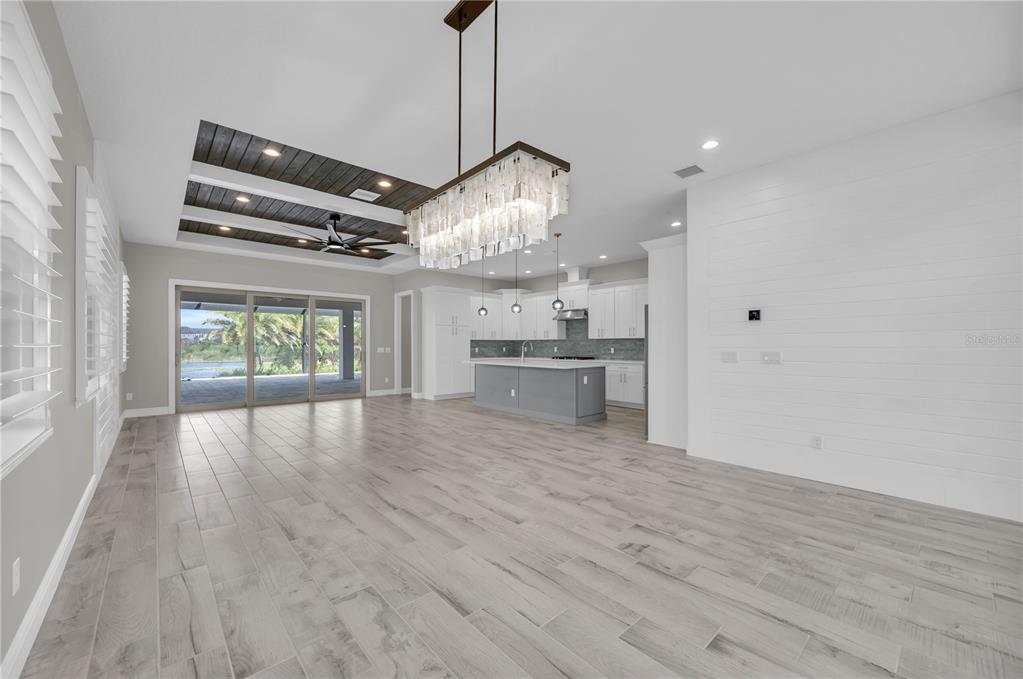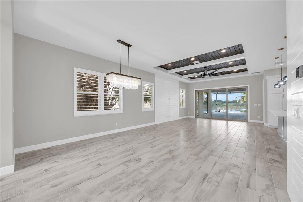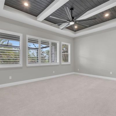Ceiling Fan(s), Coffered Ceiling(s), High Ceilings, In Wall Pest System, Kitchen/Family Room Combo, Open Floorplan, Pest Guard System, Primary Bedroom Main Floor, Stone Counters, Walk-In Closet(s), Window Treatments