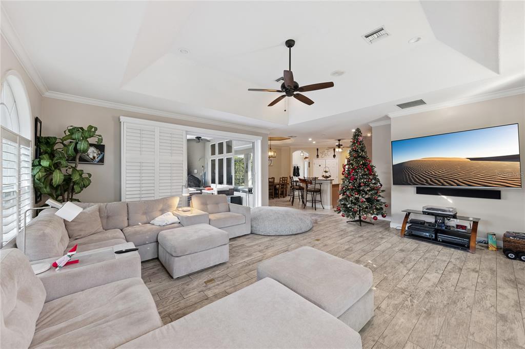 Crown Molding, Eating Space In Kitchen, High Ceilings, Kitchen/Family Room Combo, Living Room/Dining Room Combo, Solid Surface Counters, Solid Wood Cabinets, Walk-In Closet(s)