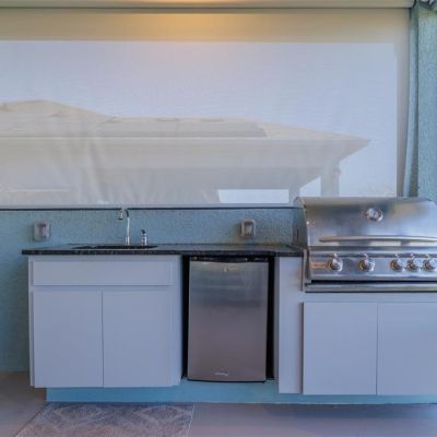 Irrigation System, Outdoor Grill, Outdoor Kitchen, Playground, Private Yard, Rain Gutters, Sliding Doors, Storage