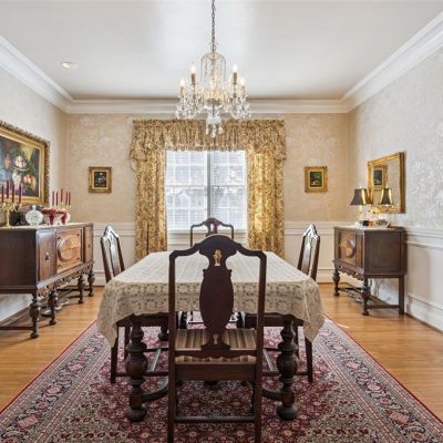 Built-in Features, Ceiling Fan(s), Crown Molding, Eating Space In Kitchen, High Ceilings, L Dining, Primary Bedroom Main Floor, Split Bedroom, Walk-In Closet(s), Window Treatments
