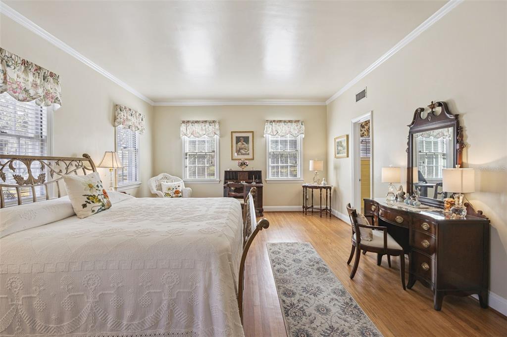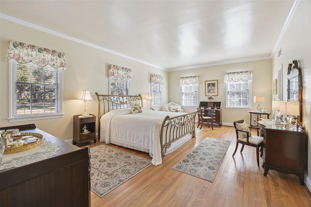 Built-in Features, Ceiling Fan(s), Crown Molding, Eating Space In Kitchen, High Ceilings, L Dining, Primary Bedroom Main Floor, Split Bedroom, Walk-In Closet(s), Window Treatments
