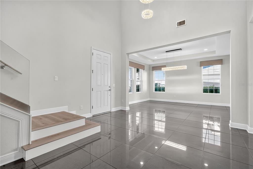 Ceiling Fan(s), Eating Space In Kitchen, High Ceilings, Kitchen/Family Room Combo, Open Floorplan, PrimaryBedroom Upstairs, Solid Surface Counters, Split Bedroom, Tray Ceiling(s), Walk-In Closet(s), Window Treatments